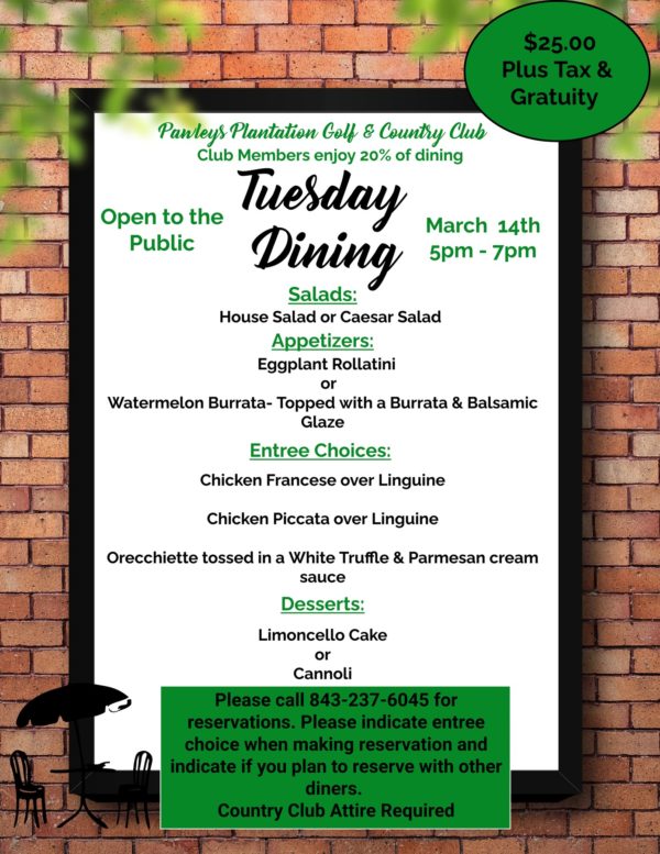 Pawleys Plantation Tuesday Dinner