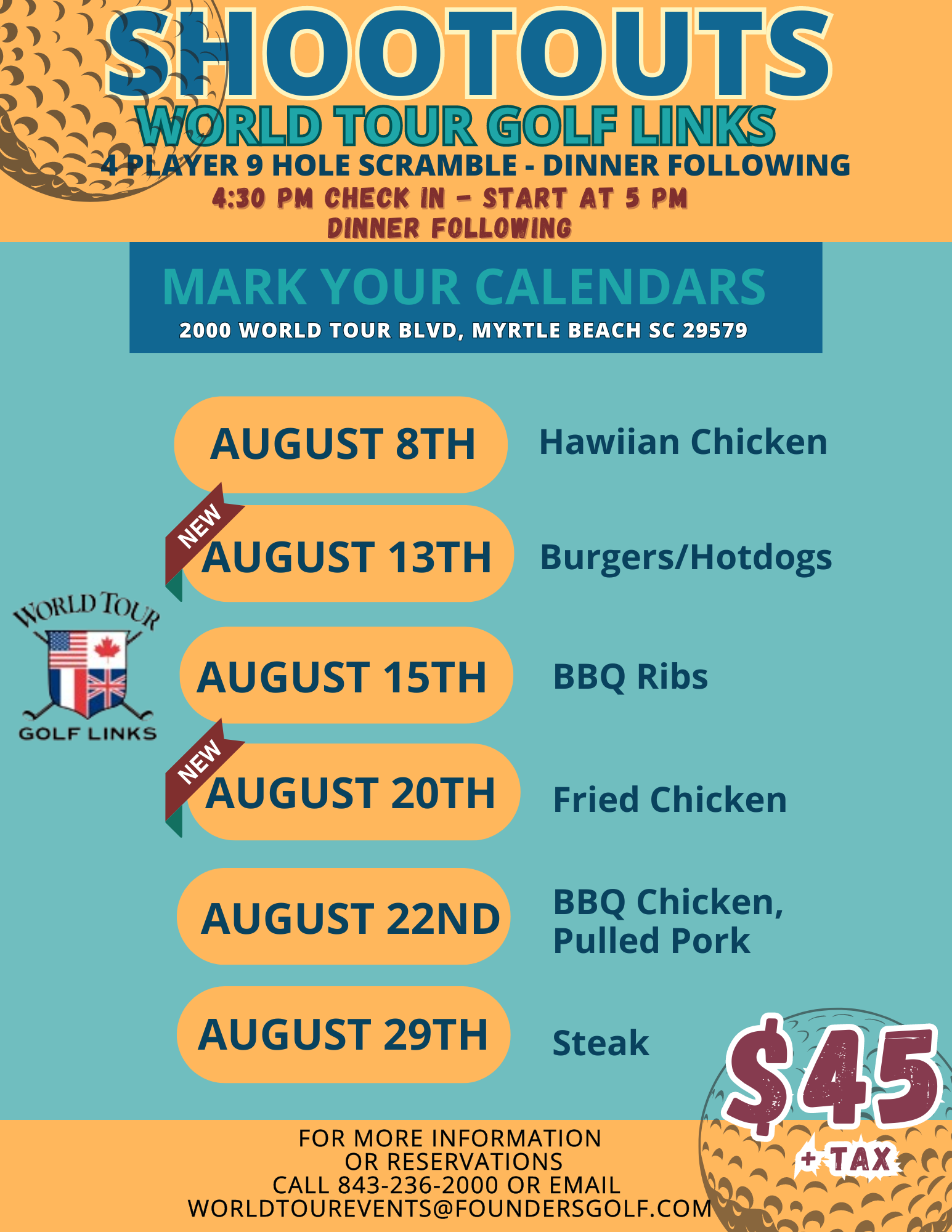 World Tour Shootouts & Dinner – August
